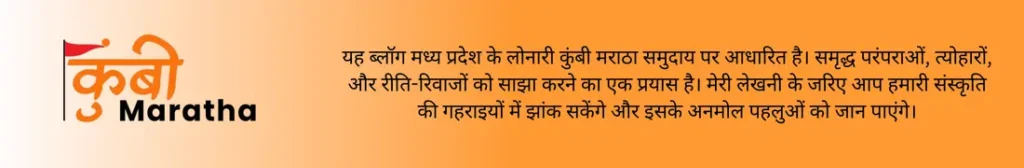 मेरा नाम आलोक साबरे है, और मुझे अपने लोनारी कुंबी मराठा समाज की परंपराओं, त्योहारों और रीति-रिवाजों को संजोने और उन्हें लिखने का शौक है। मेरे ब्लॉग Kunbi Maratha के माध्यम से मेरा उद्देश्य है कि हमारे समाज का गौरव और अस्तित्व हमारे वडीलों के जाने के बाद भी जीवित रहे। यह ब्लॉग हमारी सांस्कृतिक धरोहर को संरक्षित करने का एक प्रयास है।
