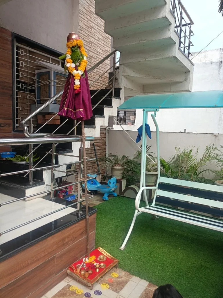 - आंगन में सुंदर रंगोली बनाई जाती है।